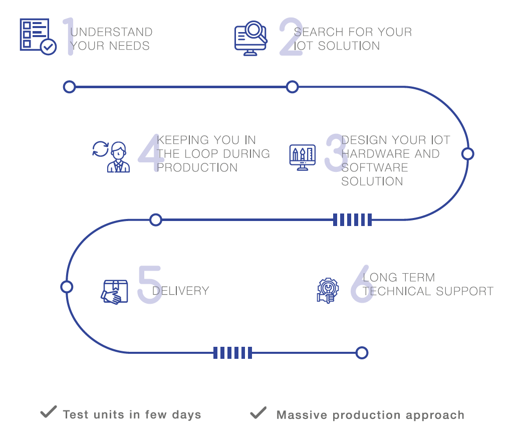 We guide the client developing new devices, redesigning existing products or transforming client’s products into an IoT solution.